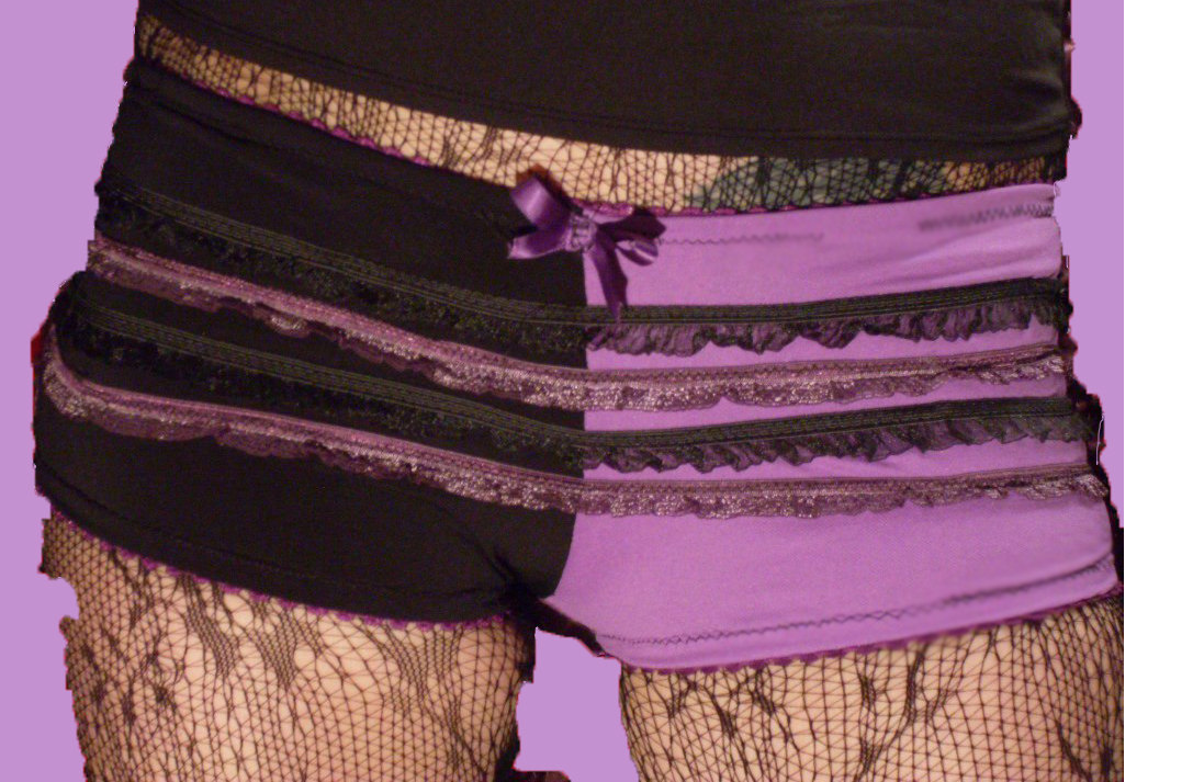 sexy Lycra 4w stretch striped and two tone harlequin lacy boy-short, hot-pants