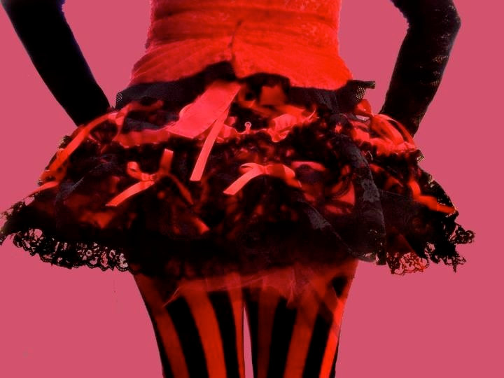 gothic lolita burlesque bustle. satin and lace with tie in front. sexy over a skirt, dress or leggings, with a corset or waist cincher/