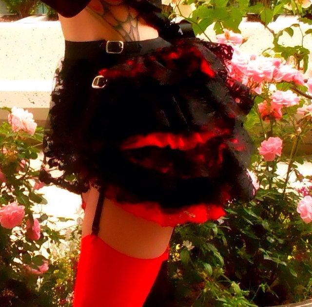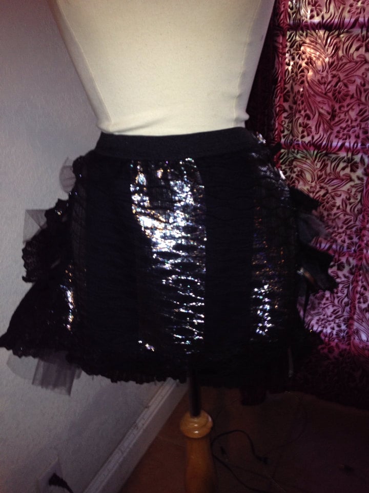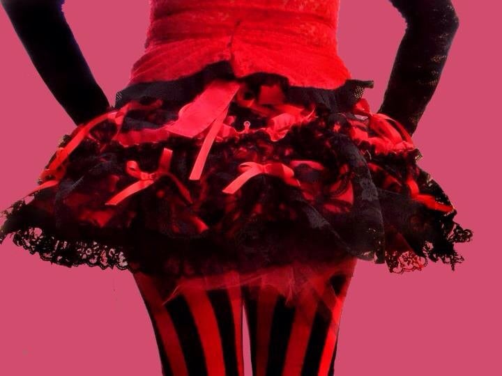 Shown Red and black satin and lace bustle skirt, but can be made in custom, colors, fabric, sizes
